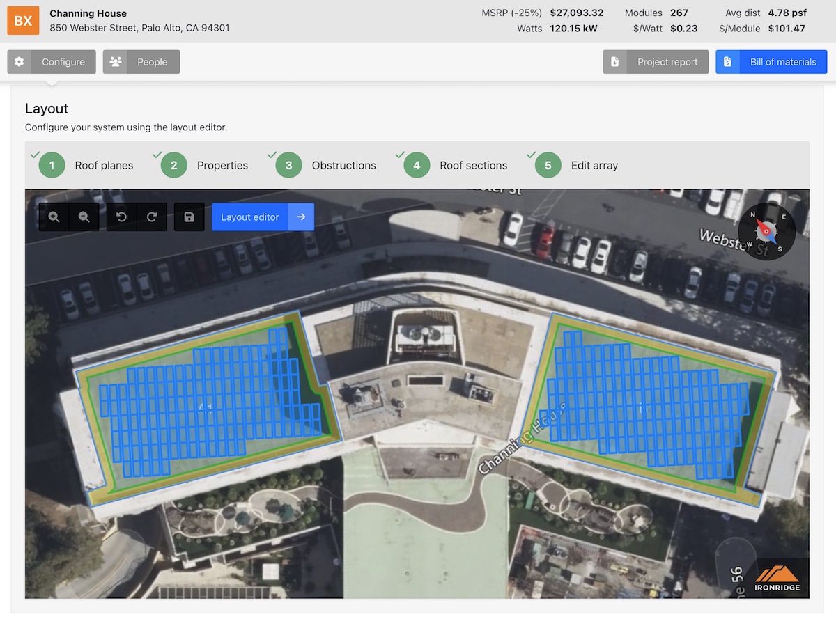 Working with IronRidge's mechanical and structural engineers, we developed online Design Assistants™ that allow the installer to quickly and easily spec out the system they are configuring using graphical tools.